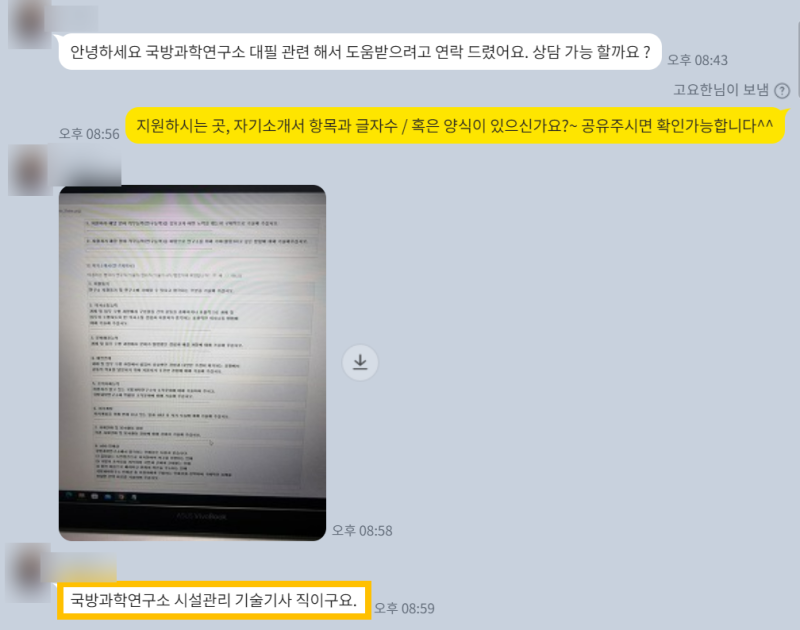 이 단계에서는 단순히 글자를 다듬는 것을 넘어, 지원자분의 숨겨진 잠재력을 발굴하고, 국방연구소의 니즈와 완벽하게 일치하는 스토리를 만들어가는 과정입니다. 마치 명품을 다듬는 장인처럼, 지원자분의 경험이라는 원석을 국방연구소라는 틀에 맞춰 최고의 작품으로 탄생시키는 작업이죠. 제가 직접 첨삭/대필하면서 얻은 노하우와 수많은 합격 사례를 통해 지원자분께 최적화된 맞춤 전략을 제시해 드립니다.