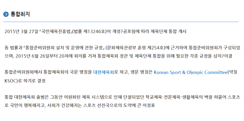 미션: 생활체육 활성화, 전문체육 육성으로 국민 건강 증진 및 스포츠 선진화 기여