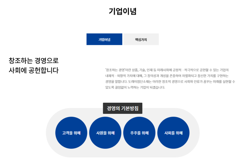 핵심가치: 고객 중심, 혁신 추구, 사회적 책임