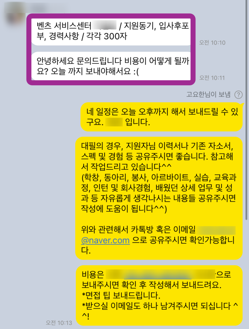>> 2단계: 자소서 초안 및 관련 자료 전달