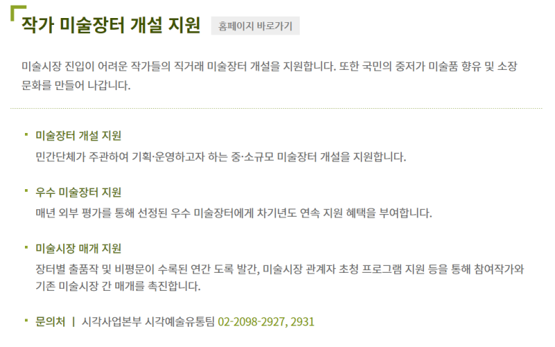 - 주요 사업: 예술경영 컨설팅, 국내외 예술 유통 및 진출 지원, 예술인 복지 및 일자리 지원, 예술 현장 조사 연구 등