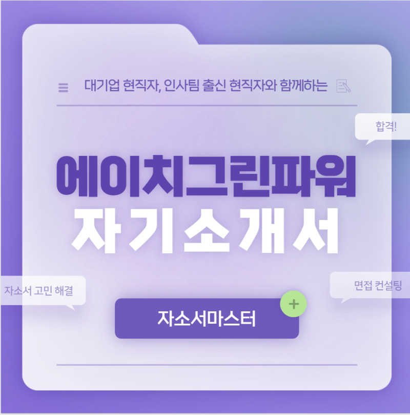 안녕하세요! 👋 수백 건의 대기업, 공기업 취업 및 학사, 석사, 박사 입학까지 다수의 합격 사례를 만들어낸 자기소개서 전문가입니다. 매년 1000명 이상의 지원자분들과 함께하며 쌓은 **저만의 합격 노하우**를 바탕으로, 이번 **에이치그린파워 생산관리 직무 합격 사례**를 자세히 공유해 드리려고 합니다. 📝✨