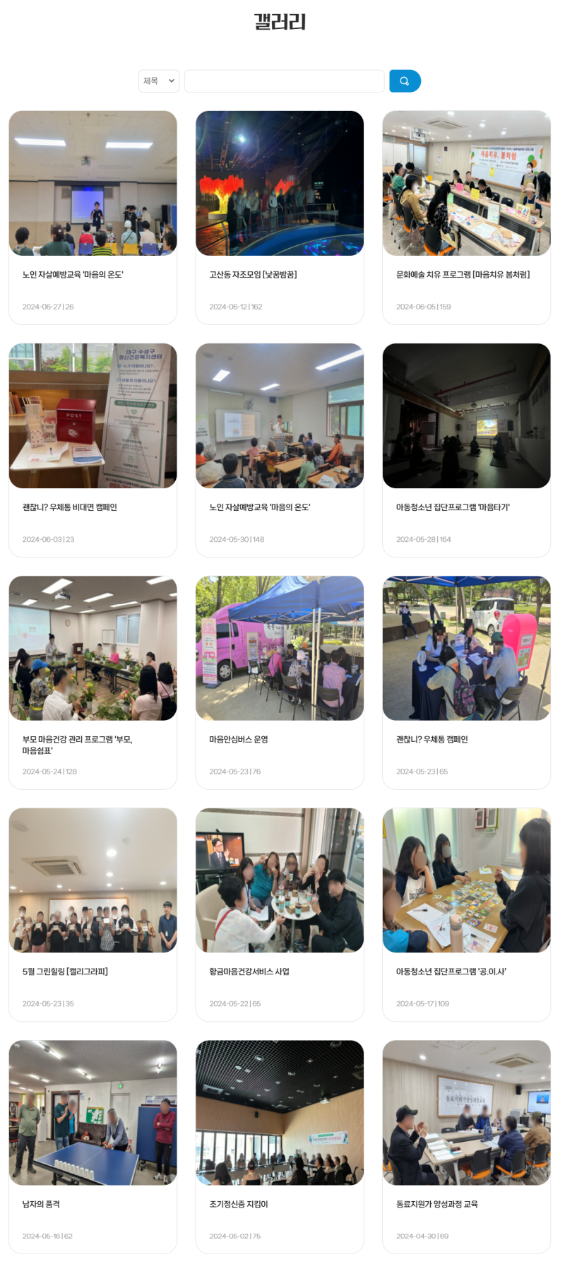 - 교육: 지역 주민 대상 교육 프로그램 운영 (ex. 건강 교육, 인문학 강좌)