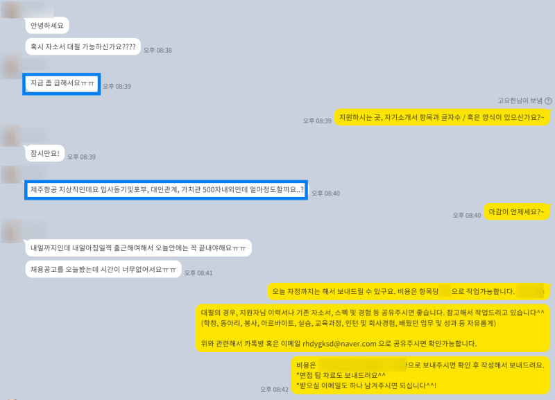 ✨ 모든 기업 자소서 첨삭, 작성 대행, 대필 가능합니다!