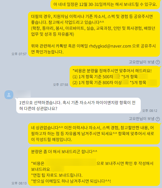 매년 2000여명 이상 자소서첨삭대필 진행, 작성대행 서비스!