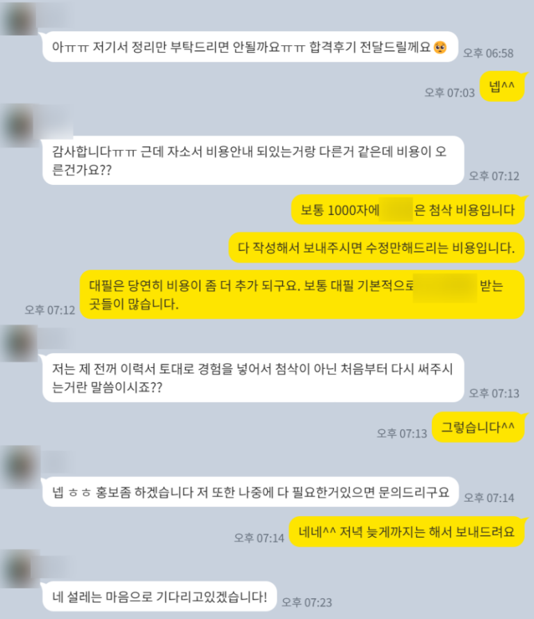 청소년쉼터 자소서 첨삭 대필 합격후기