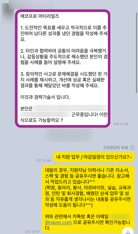대기업 자소서 첨삭 대필 합격후기