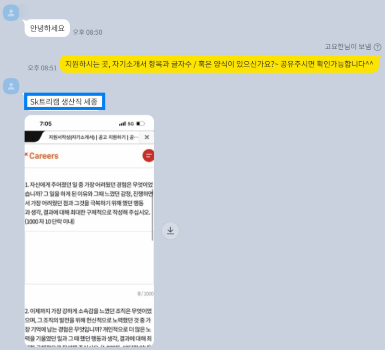 SK트리켐 채용 자기소개서, 합격 비법 첨삭 컨설팅 실제 사례!